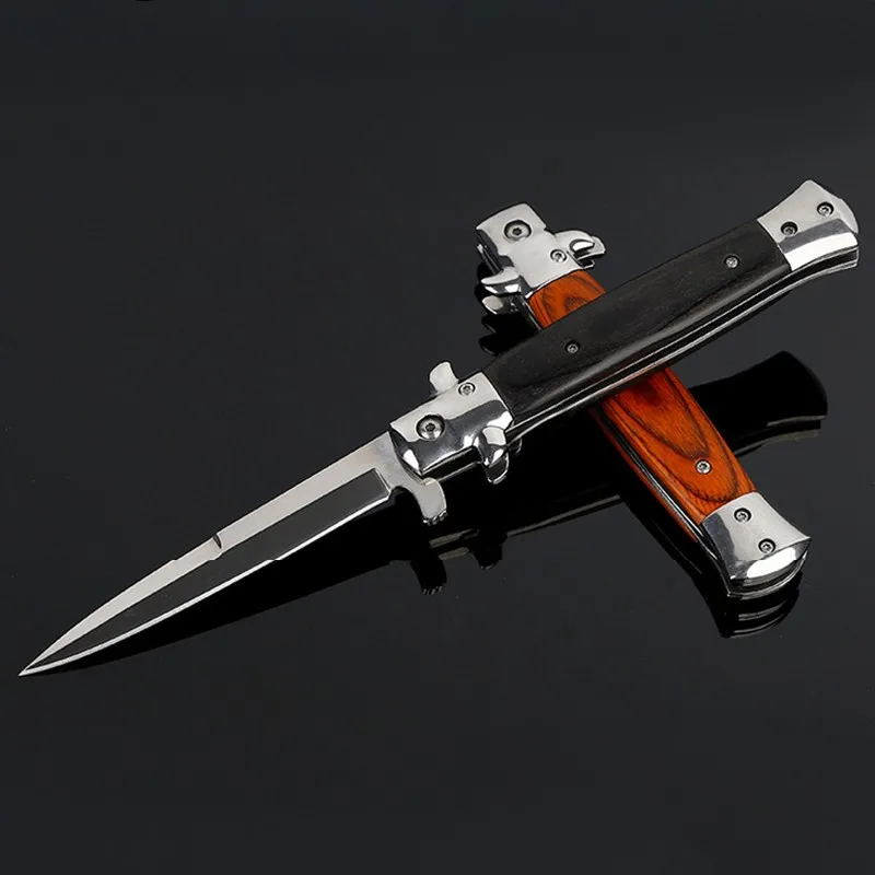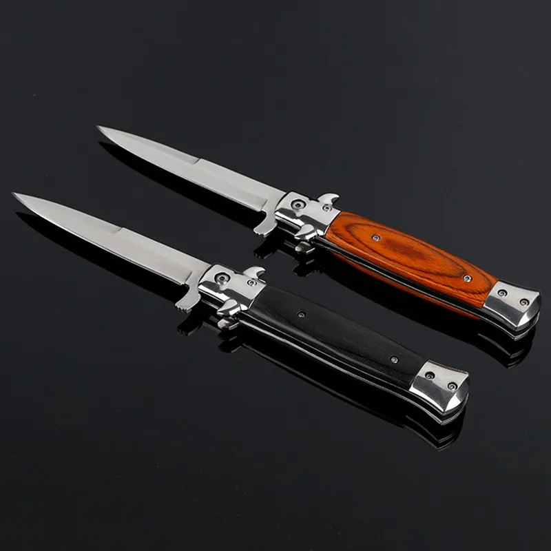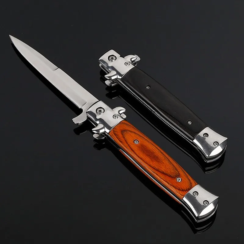 Comprar 2018 cuchillo plegable al aire libre EDC herramienta Multi bolsillo cuchillo Camping supervivencia mango de madera cuchillo 2 colores doble Camping táctico plegable Online Baratos