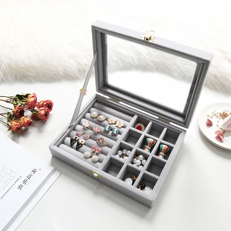 . Comprar ANFEI Cristal de terciopelo joyería caja 20*15*4,5 cm sostenedor de la bandeja de la joyería ataúd organizador 2018 pendientes anillo Z1115 Online Baratos.