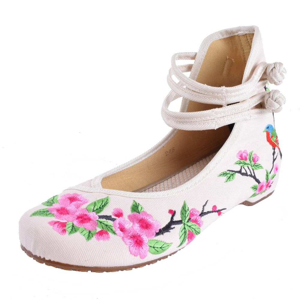 Comprar Chino tradicional bordado mujeres Canvs zapatos florales ocasionales de las señoras zapato nueva mujeres pisos solos zapatos de baile Online Baratos