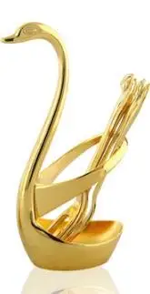 Comprar Cocina comedor Vajilla oro desnudo o pluma artesanía Cisne fruta Tenedores cuchara Tenedores set envío libre Online Baratos