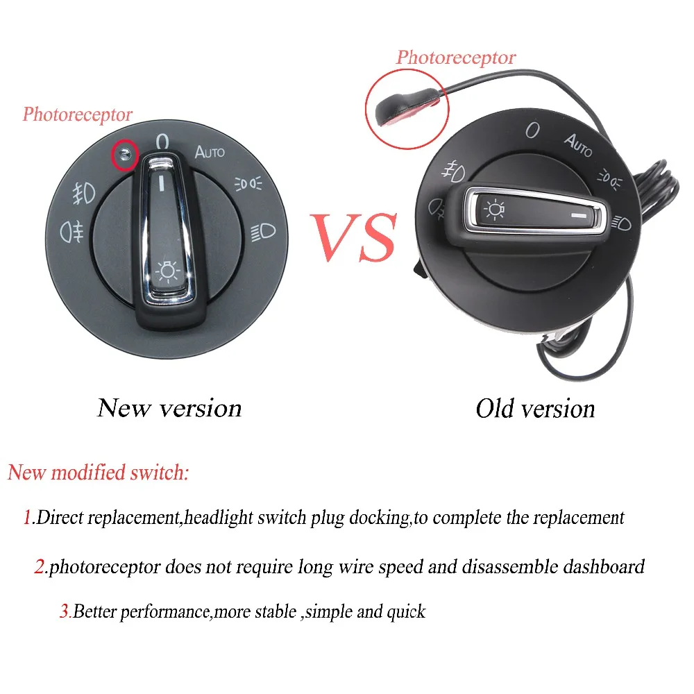 Comprar Color rojo Refit linterna AUTO Switch w luz Módulo de Sensor de estilo antiguo para VW Golf 4 Jetta MK4 Passat B5 Polo Bora Fabia Online Baratos.