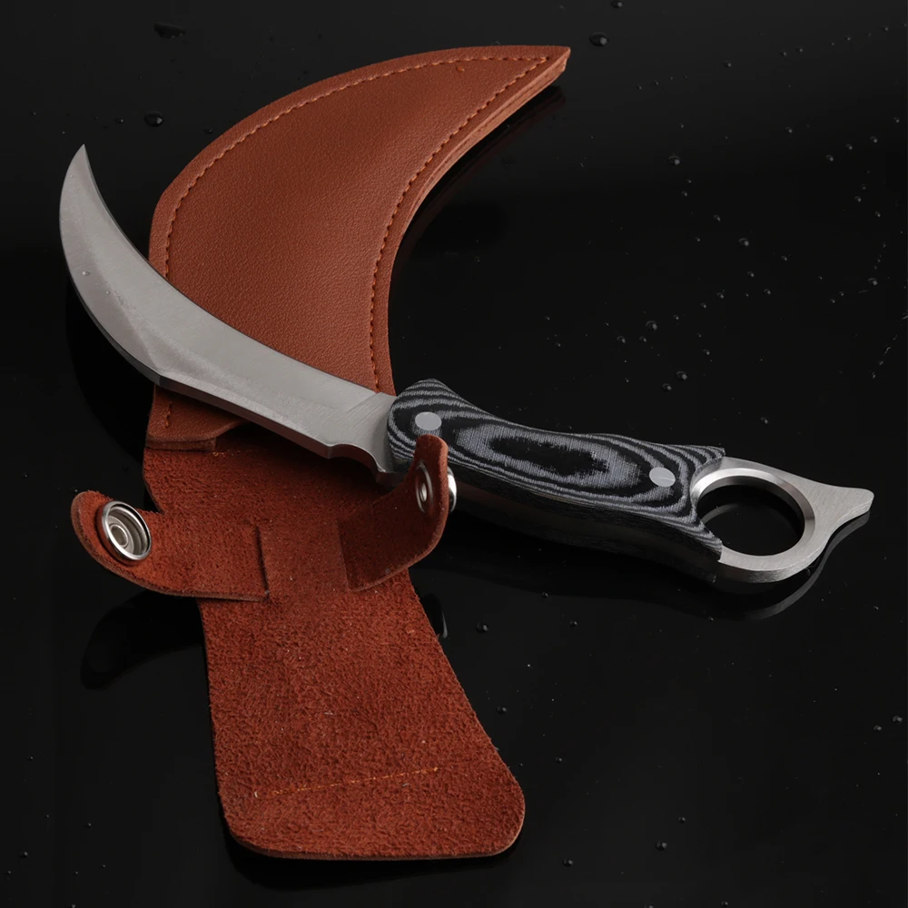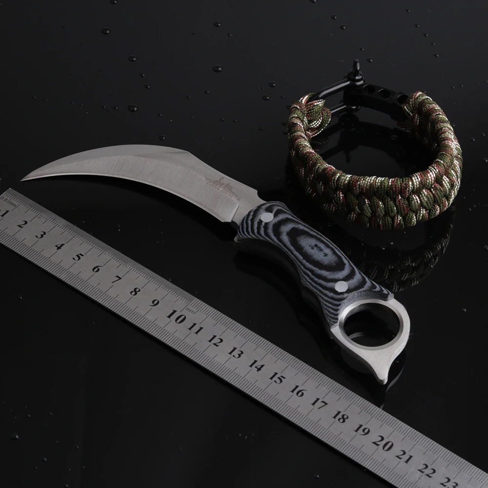 Comprar Cuchillo táctico fijo 440C hoja de acero Karambit Camping supervivencia cuchillos buena alta calidad (con cuerda de pulsera de supervivencia) Online Baratos.