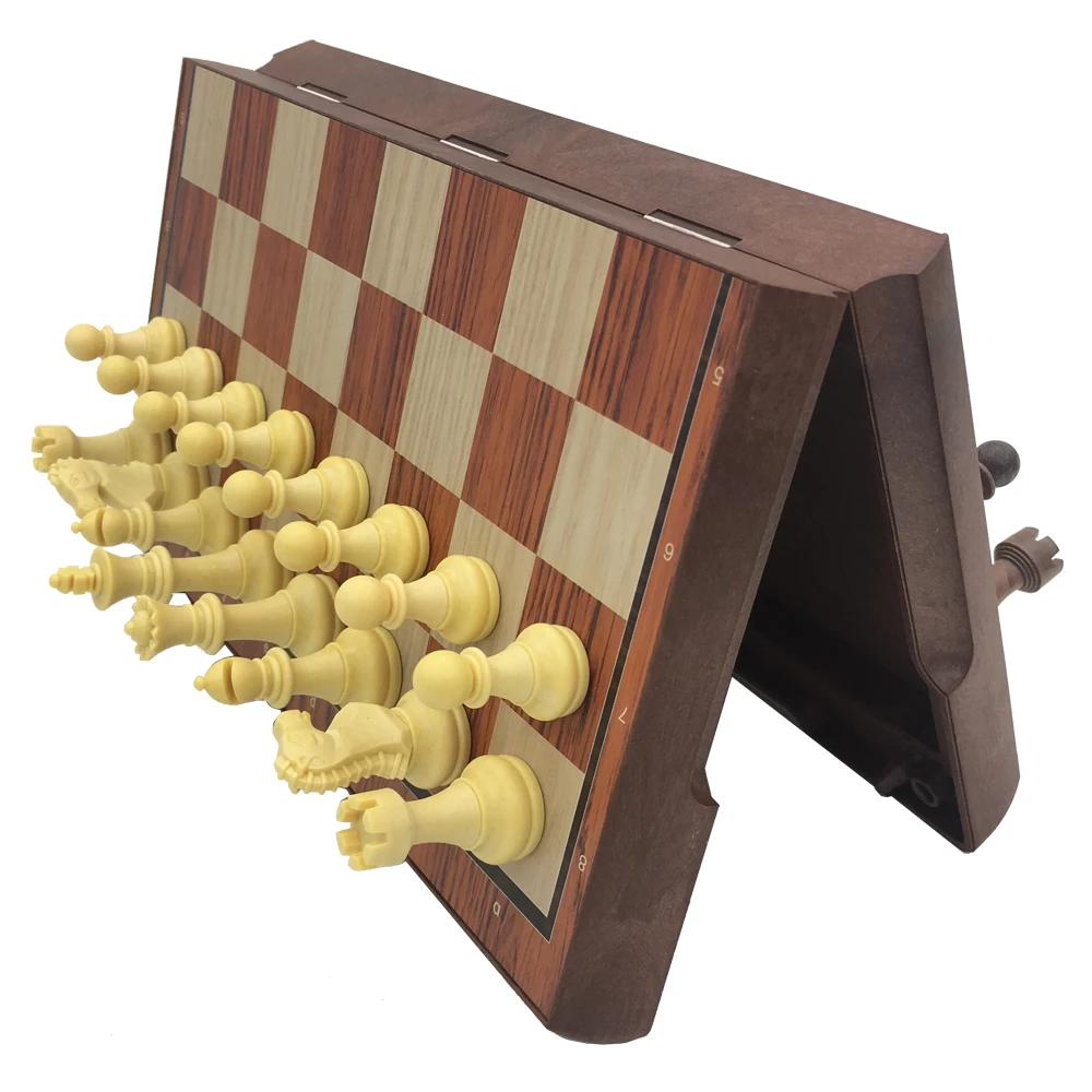 Comprar Juego de torneo de ajedrez estándar para aprender piezas magnéticas con caja plegable tamaño de tablero 28 cm * 24,2 cm juegos de viaje al aire libre Online Baratos.