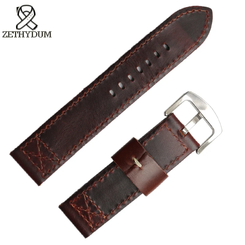 Comprar Lona de nylon correa de cuero 20 22 24mm cosido banda inferior es genuino reloj de cuero Correa hebilla Online Baratos.