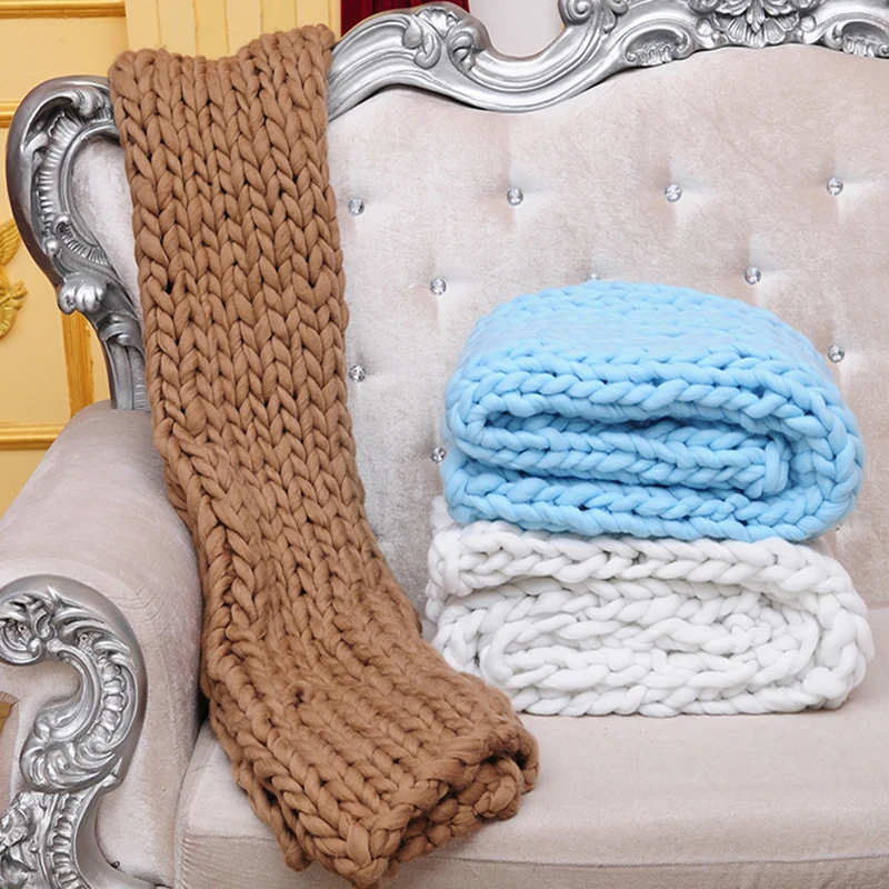 Comprar Manta de punto grande suave para cama de invierno sofá plano hilo grueso tiro de punto 16 colores sofá cubierta mantas Online Baratos