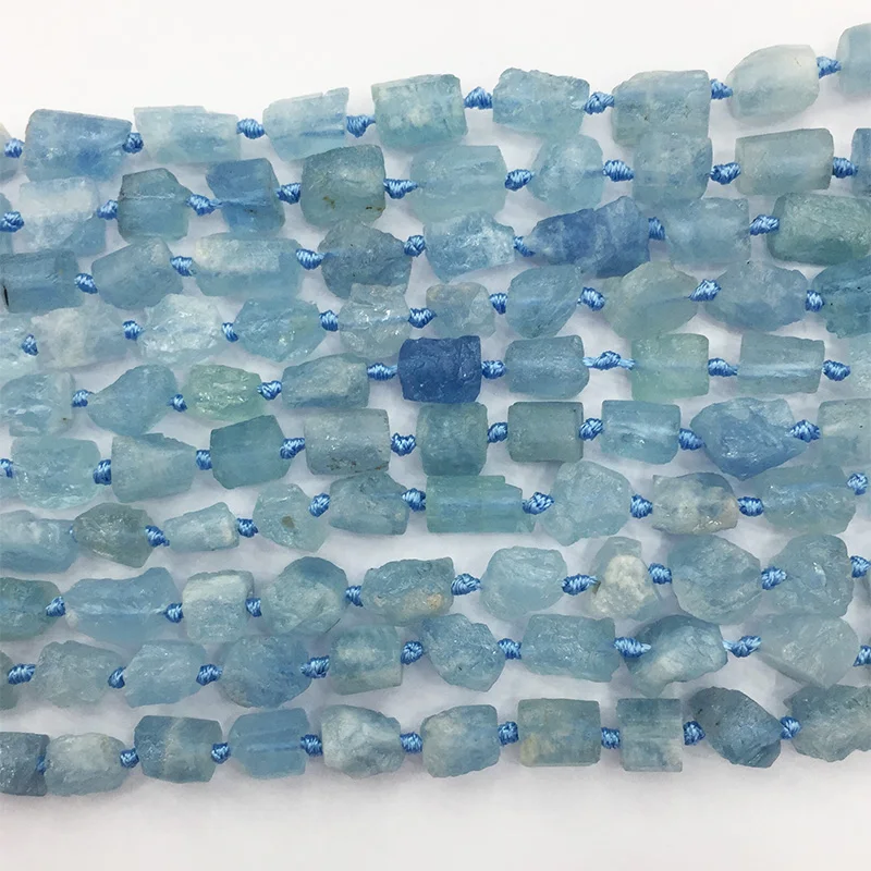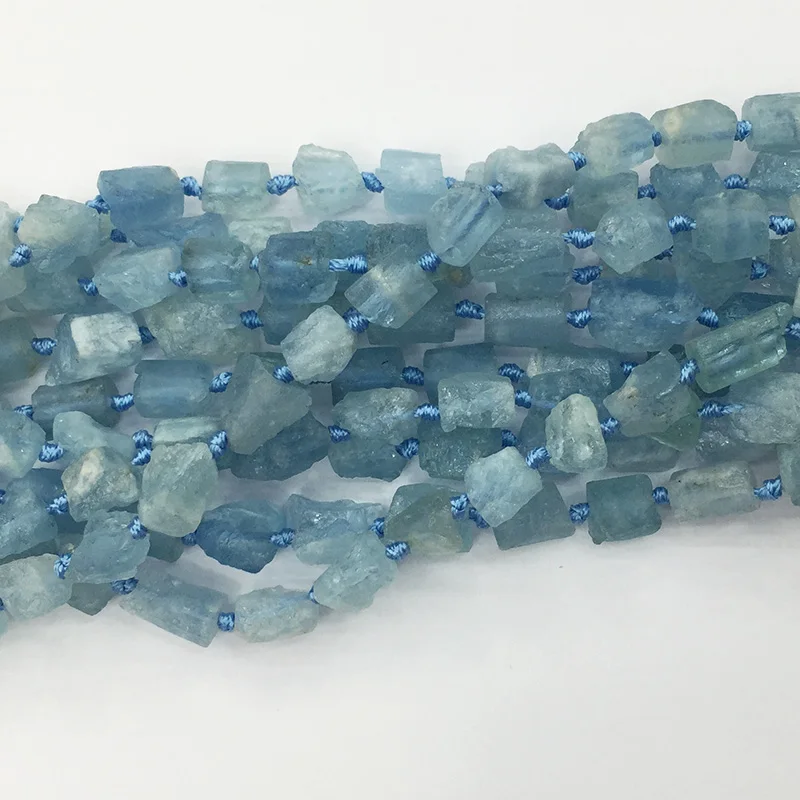 Comprar Natural crudo Mineral agua clara Azul Aguamarina corte a mano Nugget libre forma suelta áspero mate facetado cuentas 6 8mm 15 \"05351 Online Baratos.
