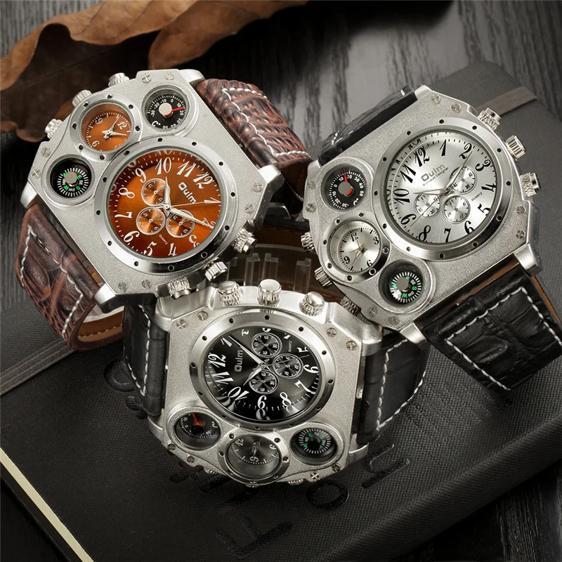 Comprar Relojes deportivos Oulm reloj de cuarzo de estilo súper grande para hombre de doble zona horaria termómetro decorativo brújula PU reloj de pulsera para hombre Online Baratos.