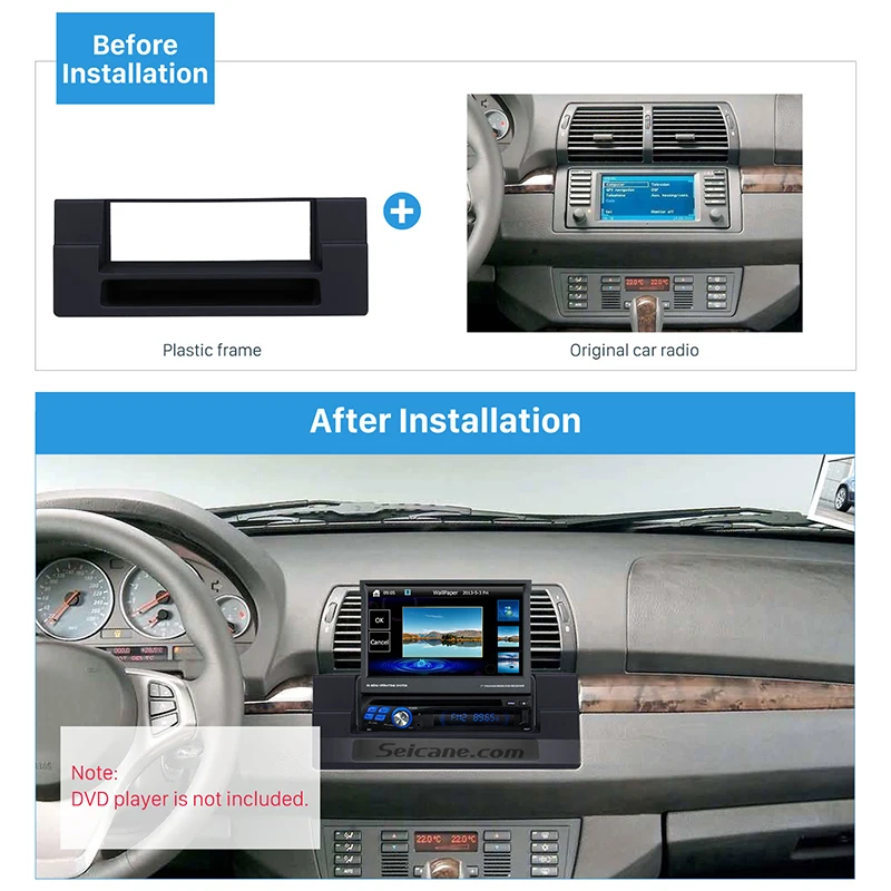 Comprar Seicane un DIN Car Radio Fascia marco para 1996 2006 BMW 5 E39 X5 E53 DVD Dash Trim instalación montaje Kit Online Baratos.