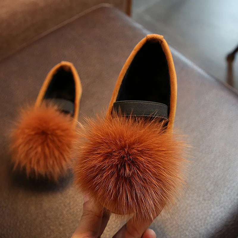 Comprar Zapatillas de algodón antideslizantes transpirables de piel de zorro sólido para niños cómodos para niñas mocasines 206 Online Baratos.