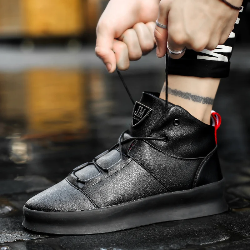 Comprar Zapatillas de deporte de los hombres de la primavera de 2018 nuevo encaje hip hop tobillo botas de Otoño de alta Top zapatos de los hombres zapatos casuales zapatos de los hombres planos de fondo grueso zapatos Online Baratos