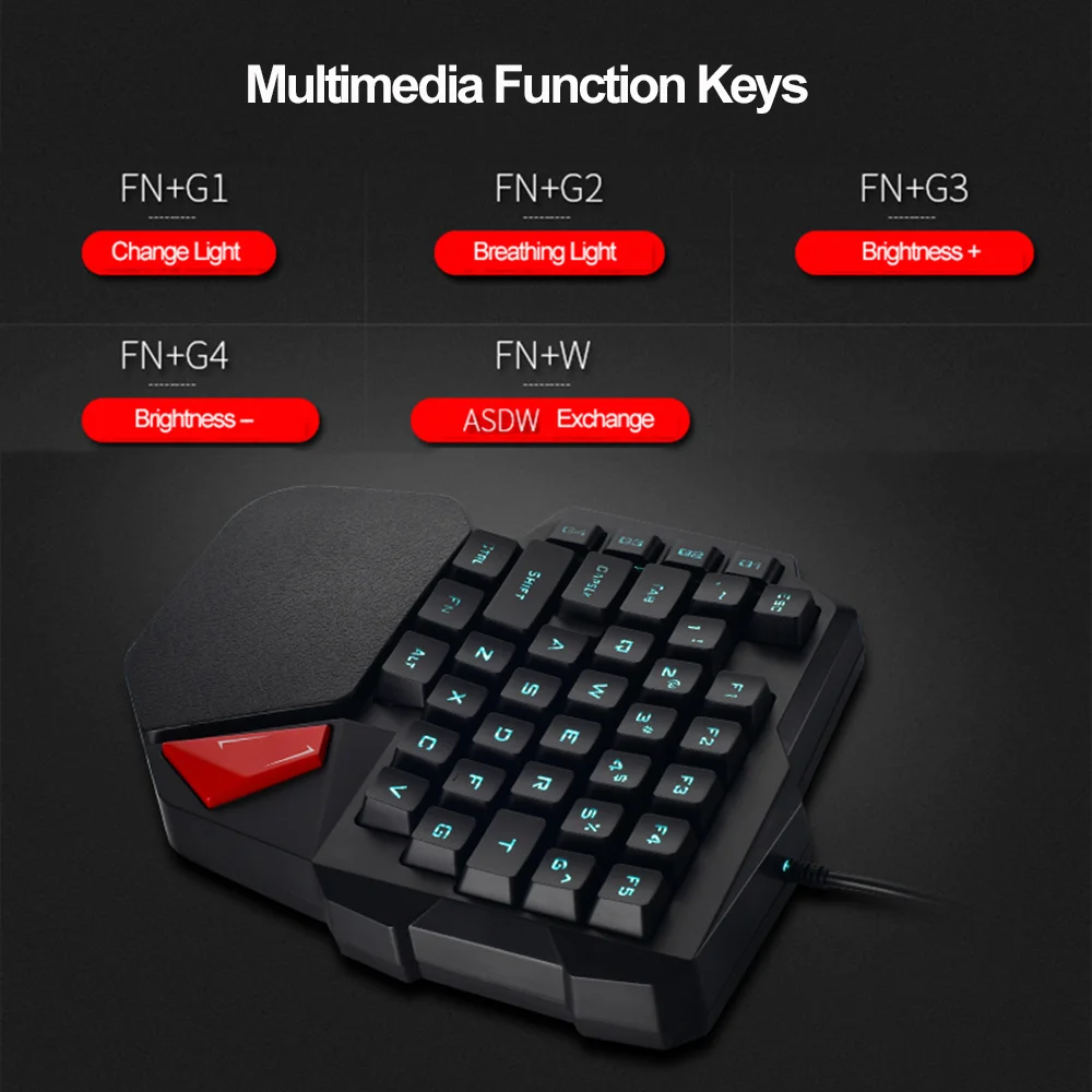 . Comprar AVATTO 38 clave profesional sola mano cable USB retroiluminado de juego teclados deporte jugador teclado para PUBG LOL CS ir overwatch Online Baratos.