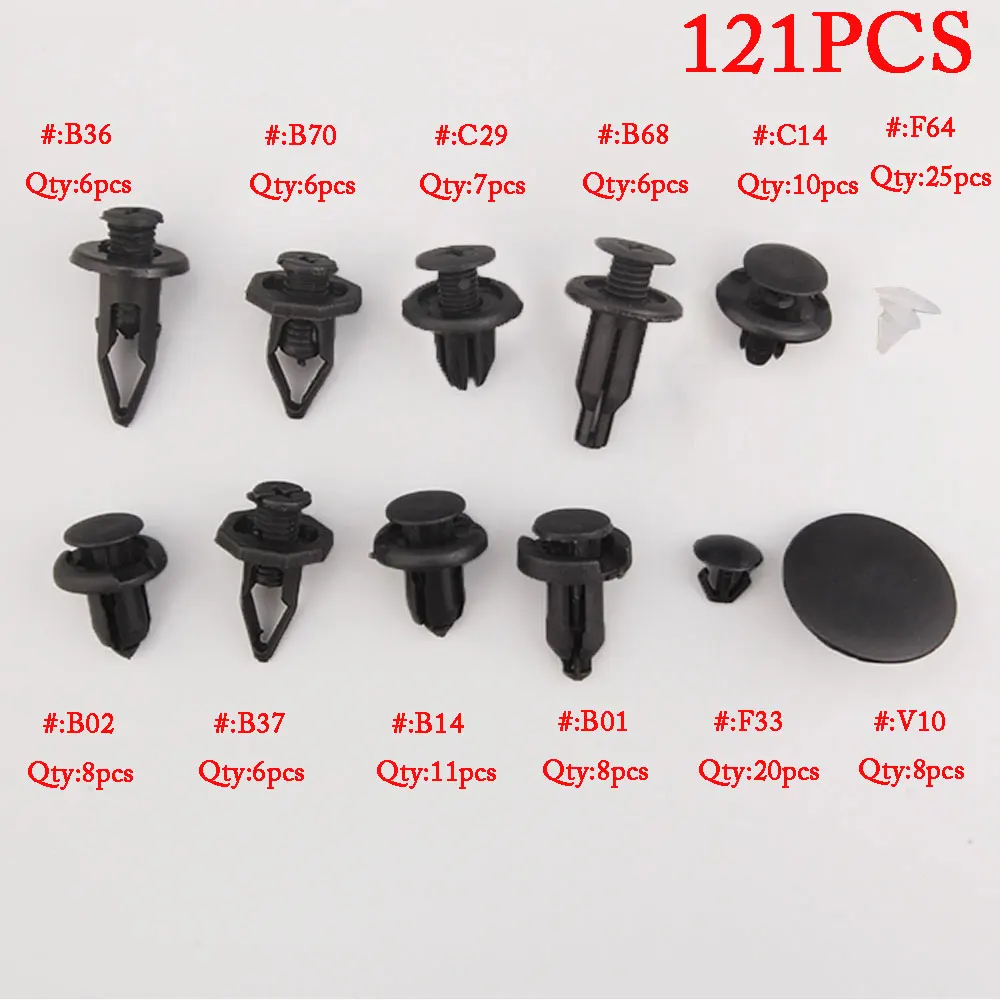 Comprar Barbacoas @ fuka 121 coche plástico remache clip Fender puerta Hood parachoques Clips ajuste Cuerpo Soportes surtido kit para Honda accord Civic CR V Online Baratos