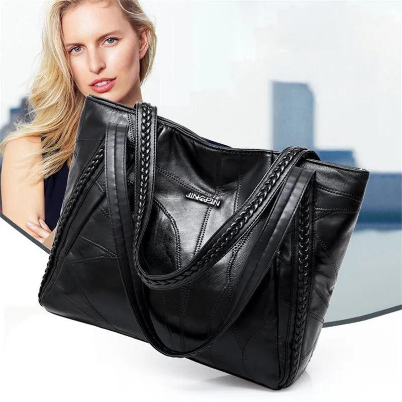 Comprar Bolso de mano de mujer genuino de piel de oveja Patchwork Casual bolsos de mano de gran capacidad bolso de hombro de mujer grandes bolsas de compras de mujer 2018 Online Baratos.