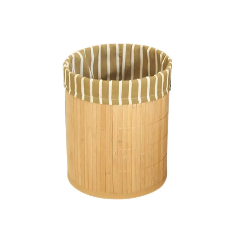Comprar Cubo de basura plegable de bambú cestas de lavandería de bambú forro de ropa de tela juguetes varios caja de almacenamiento innovador cubo de basura de ciclismo Online Baratos