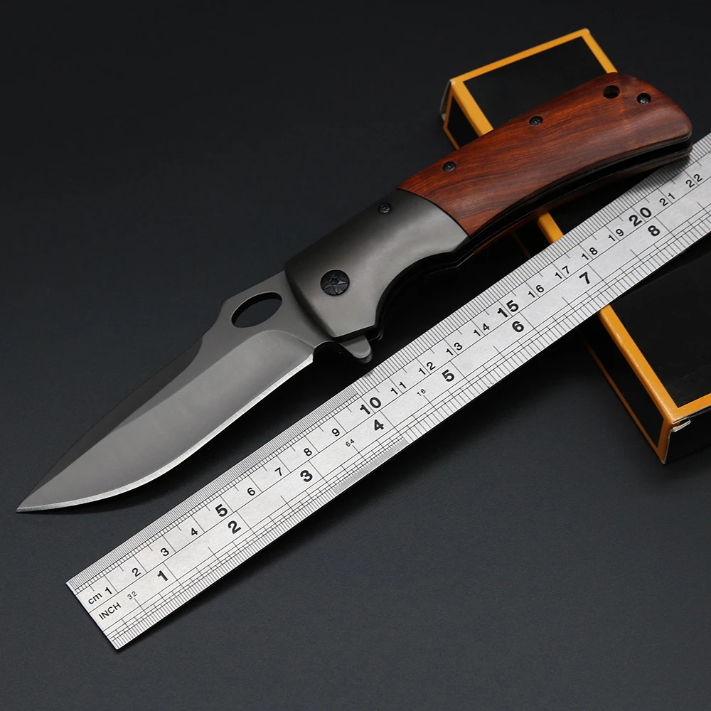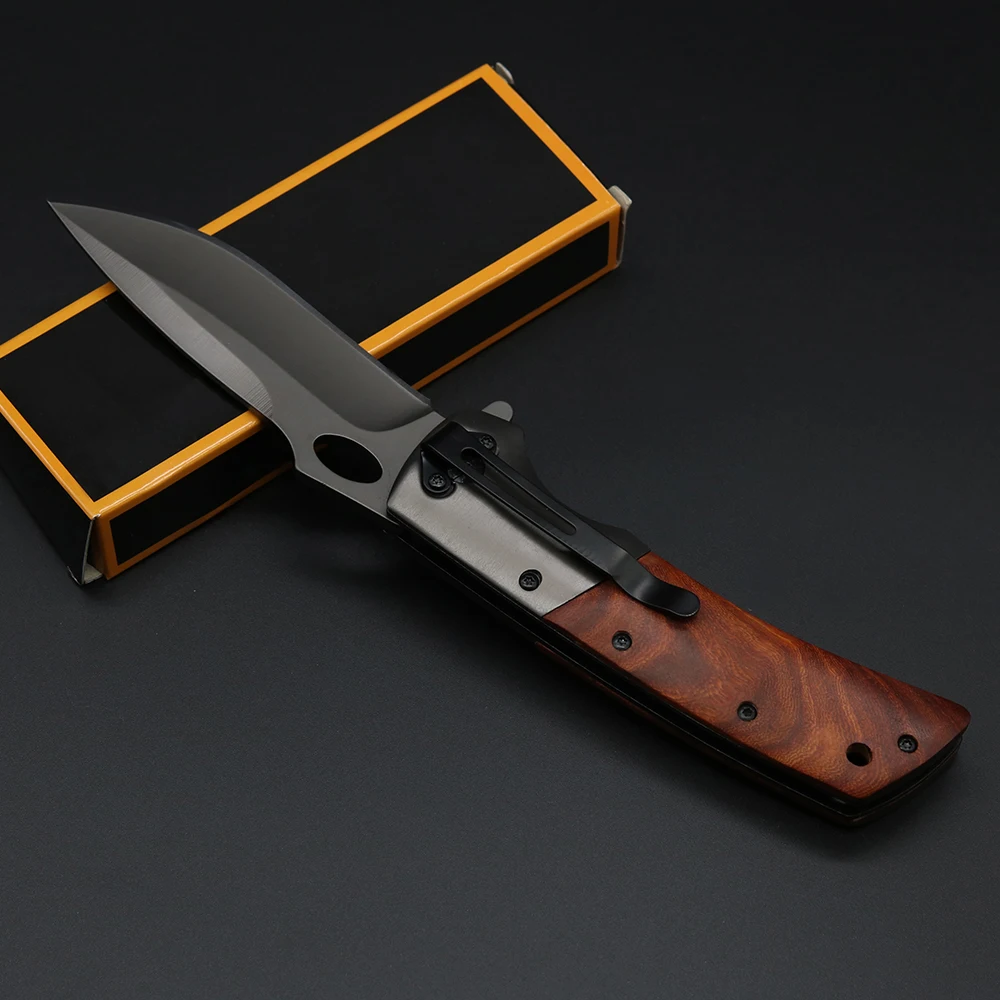 Comprar Cuchillo de caza táctico de alta calidad cuchilla de acero inoxidable mango de madera cuchillo de rescate plegable herramienta de exterior Online Baratos.
