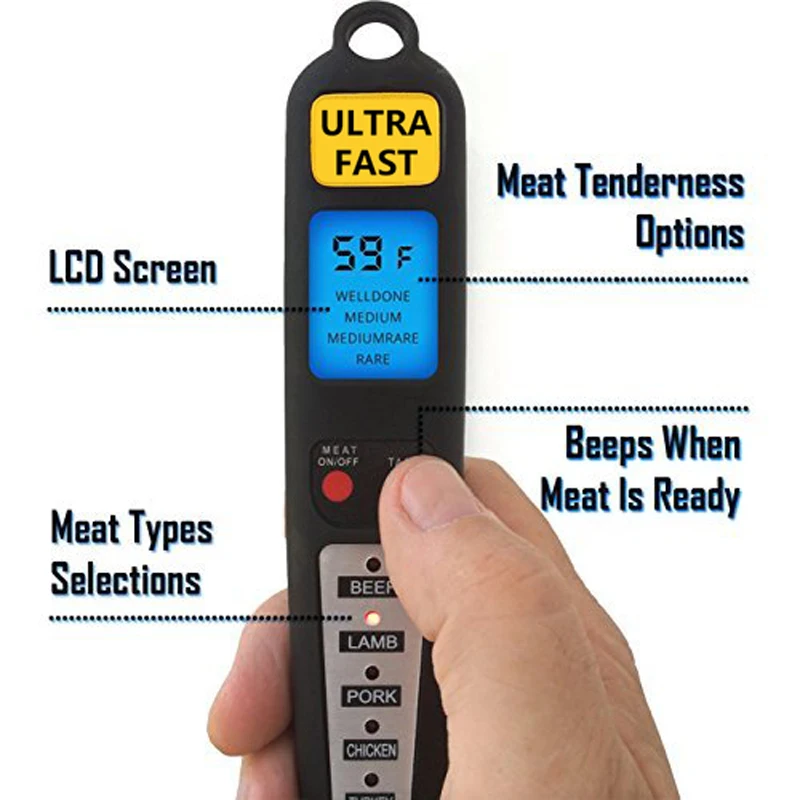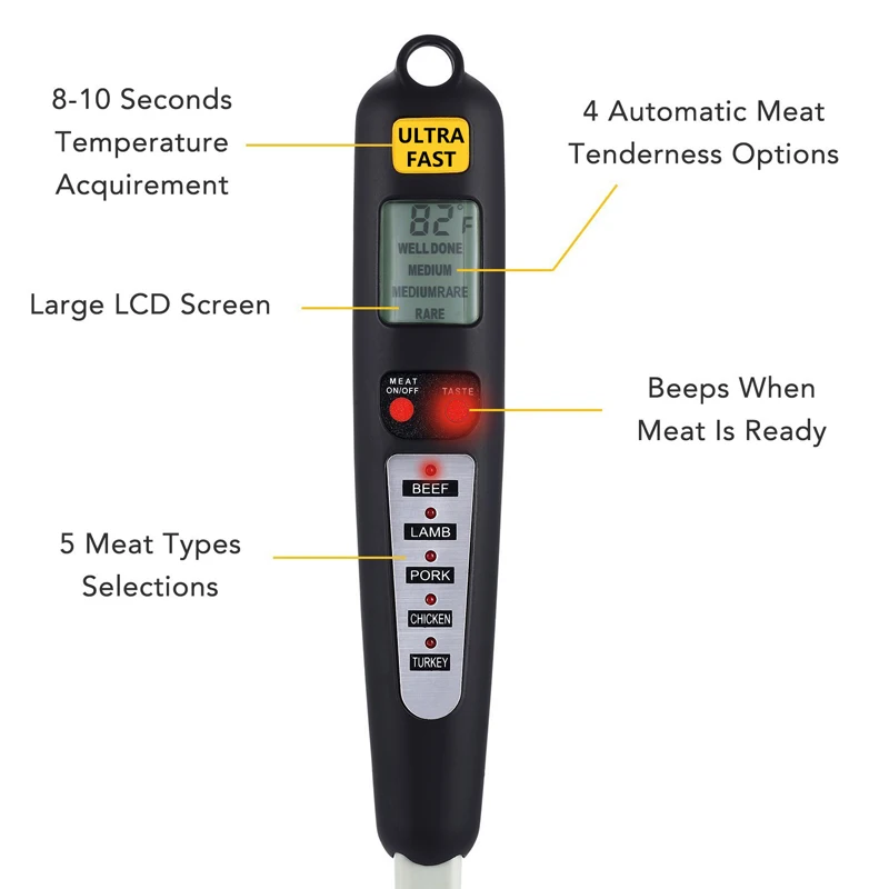 . Comprar Eaagd termómetro digital Tenedores termómetro de lectura instantánea con pantalla LED y listo alarma Largo Tenedores para barbacoa y cocina Online Baratos.