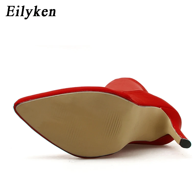 Comprar Eilyken tejido elástico botas de tobillo para las mujeres del alto talón del dedo del pie acentuado otoño damas botines 2018 mujer rojo negro Online Baratos