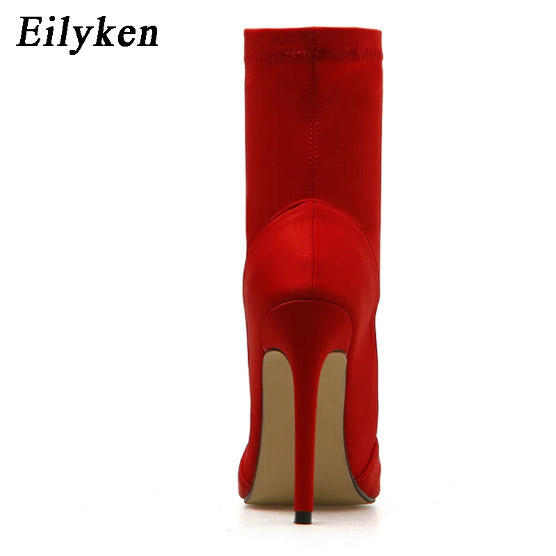 . Comprar Eilyken tejido elástico botas de tobillo para las mujeres del alto talón del dedo del pie acentuado otoño damas botines 2018 mujer rojo negro Online Baratos.