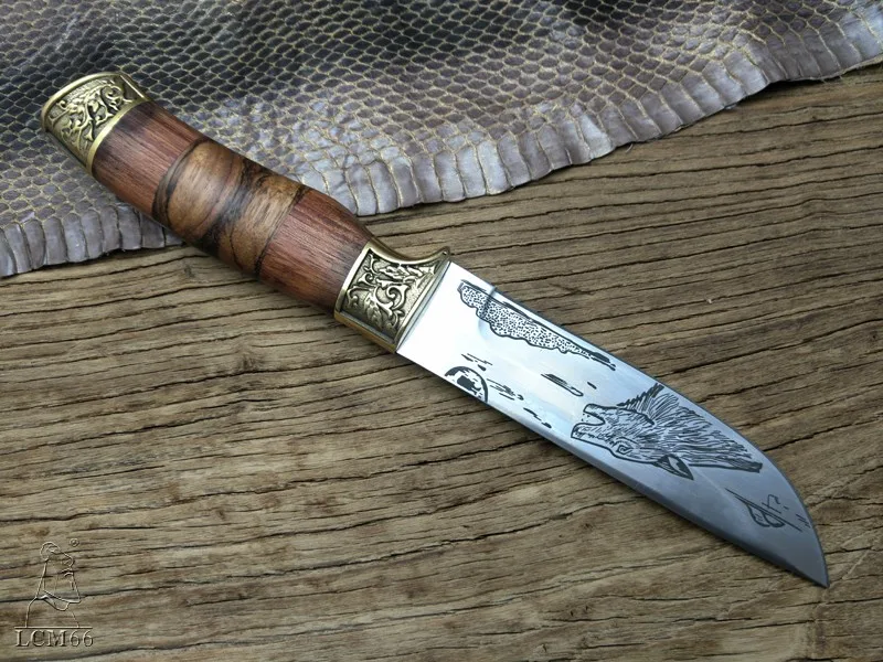 . Comprar LCM66 Lobo patrón táctico pequeño fija cuchillos cabeza de cobre + mango de madera sólida cuchillo de supervivencia Camping rescate cuchillo portátil Online Baratos.