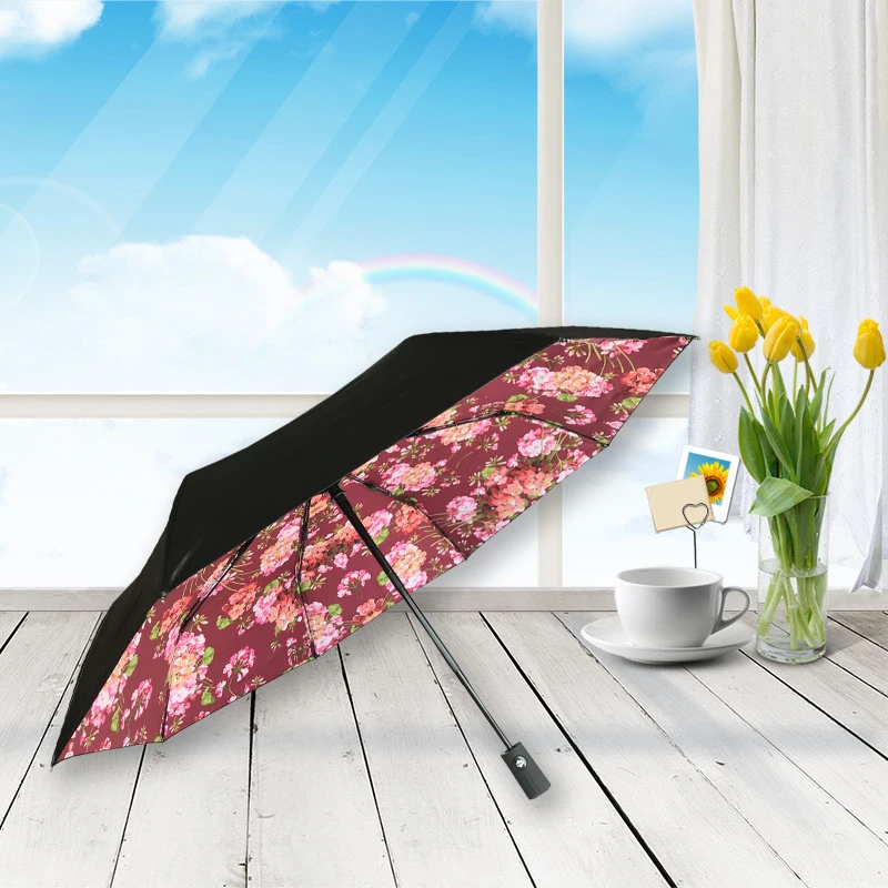 Comprar Nuevo patrón hombres negro revestimiento plegable Paraguas automático mujeres flores a prueba de viento a prueba de ultravioleta paraguas de lluvia para Online Baratos.