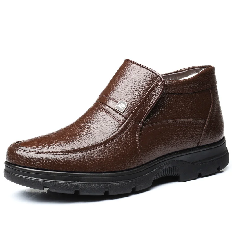 Comprar 2018 zapatos para hombre botas de nieve de alta calidad zapatos de invierno hombres zapatos hombre sapato masculino botas de tobillo de felpa cortas de cuero genuino Online Baratos