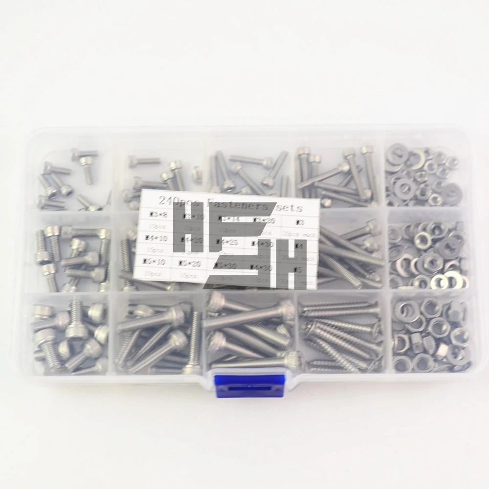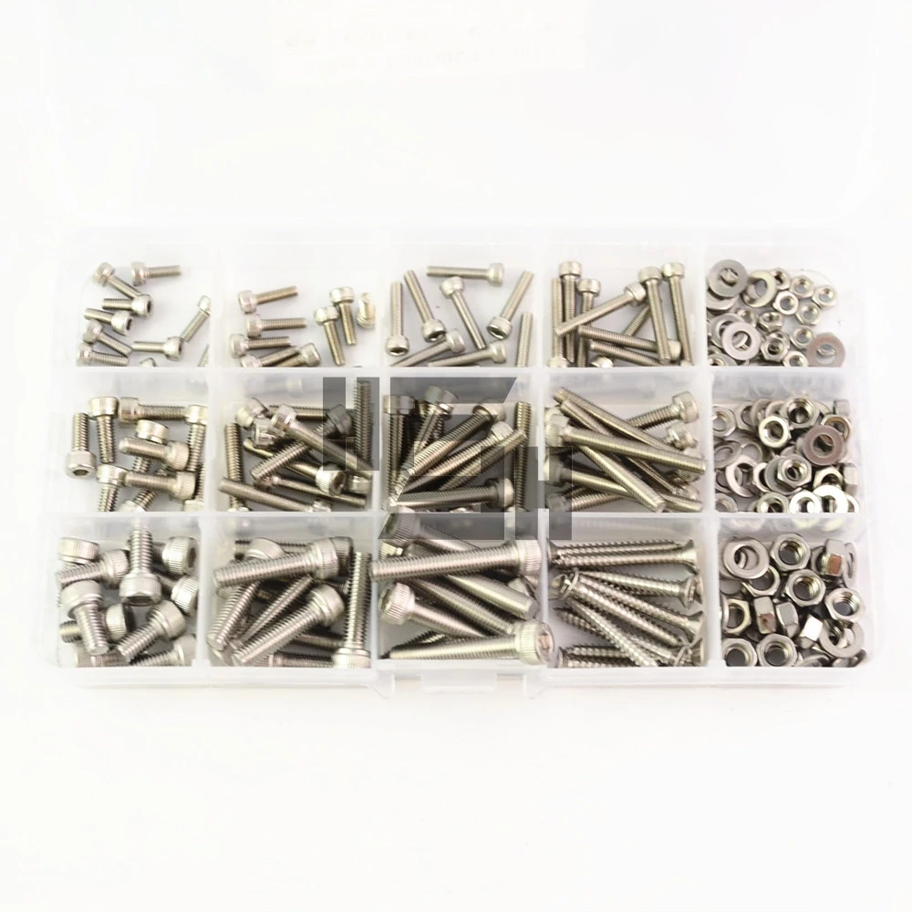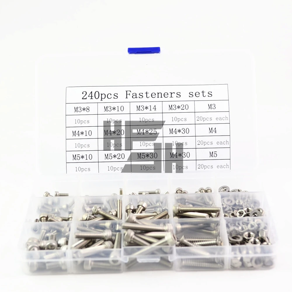 Comprar 240 unids lote 304 sujetadores hexágono de madera de acero inoxidable tapa de la cabeza de los tornillos con tuerca arandela M3 M4 M5 de tornillo kit de Online Baratos