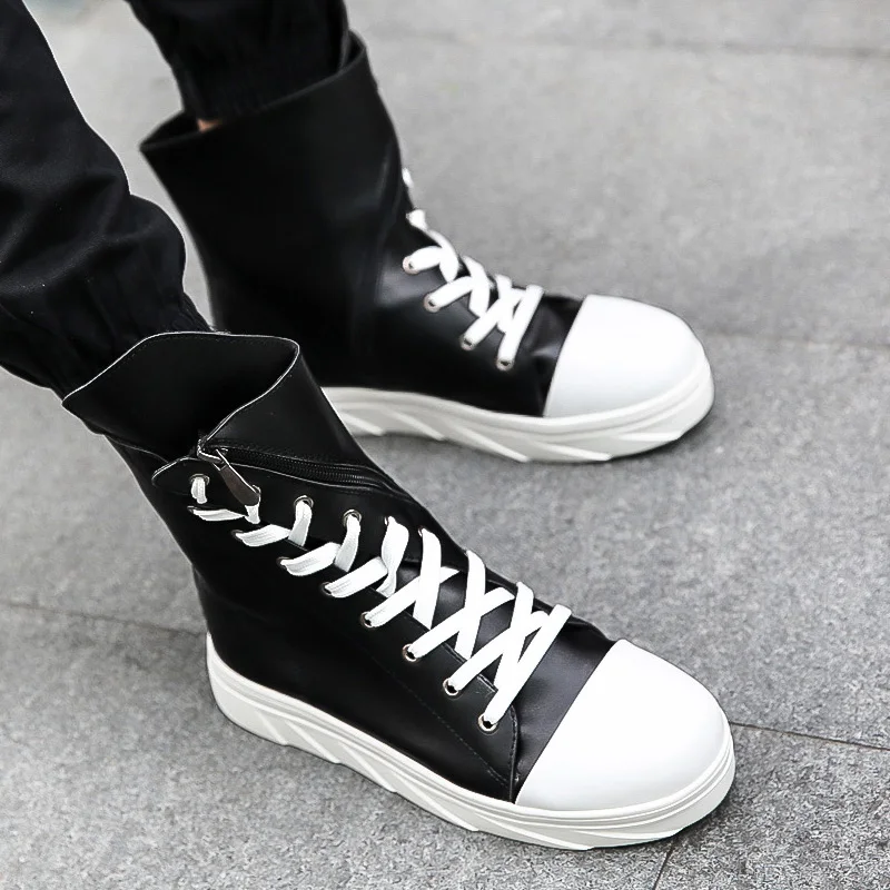 Comprar Estilo de la calle personalidad gruesa plataforma botas de encaje de muffin botas Martin botas militares blanco y negro joven hip hop Online Baratos.