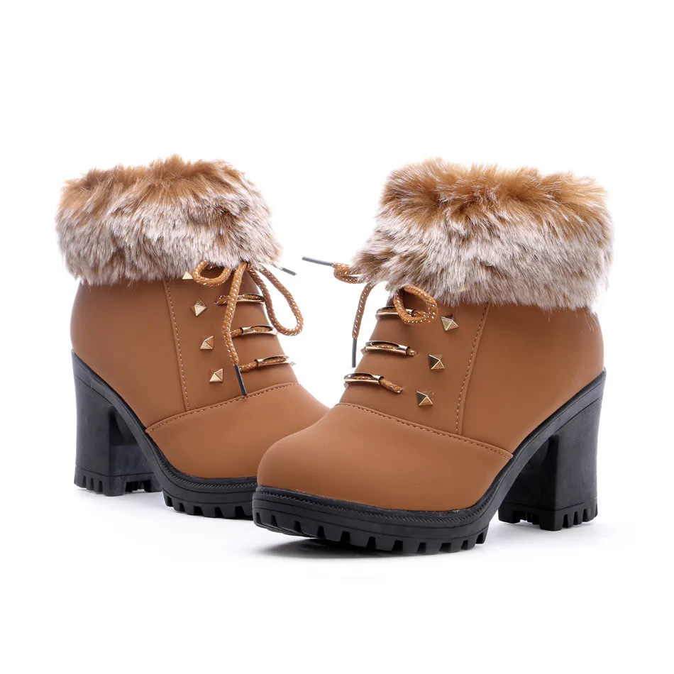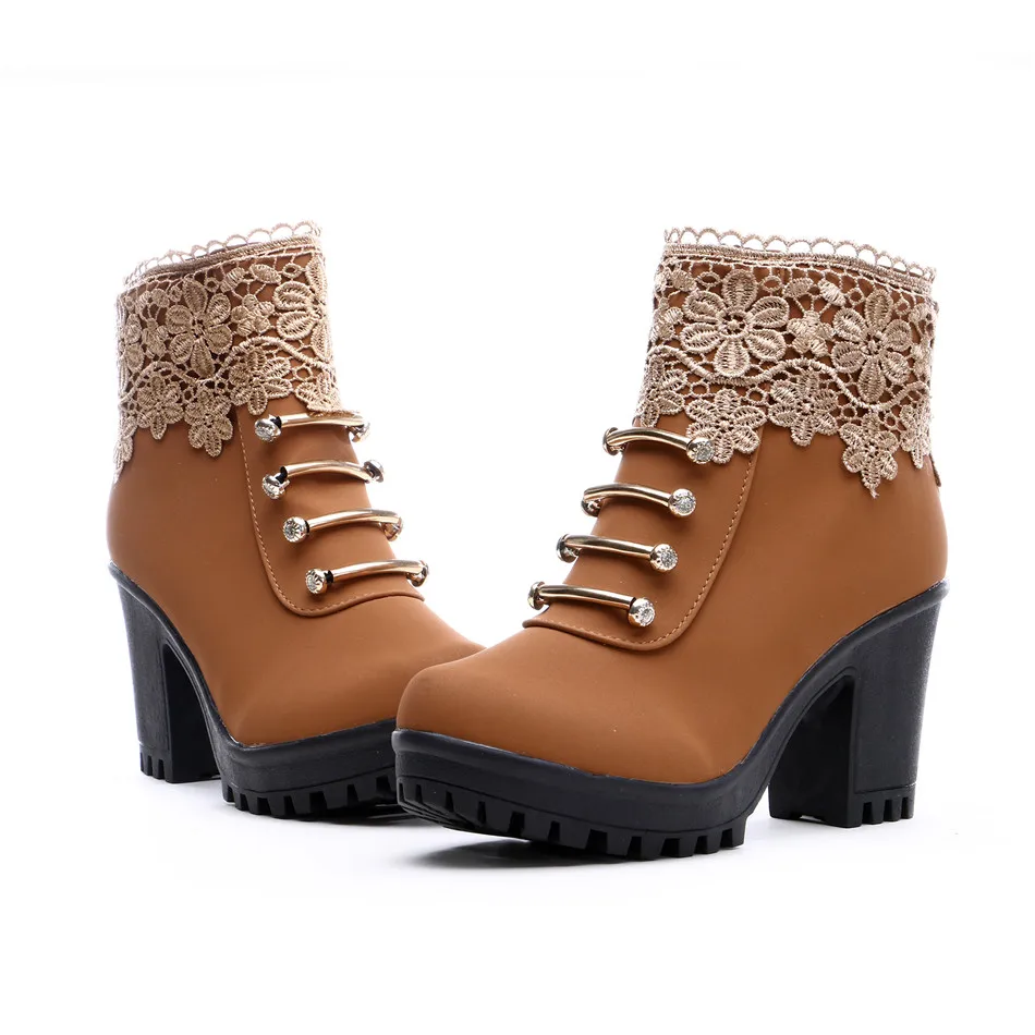 Comprar Otoño de 2018 de las mujeres de la moda botas de cuero de la PU del dedo del pie redondo botas de tobillo de encaje Sexy señoras 7 cm de tacón alto 2 cm plataforma de zapatos de mujer zapatos de cremallera Online Baratos