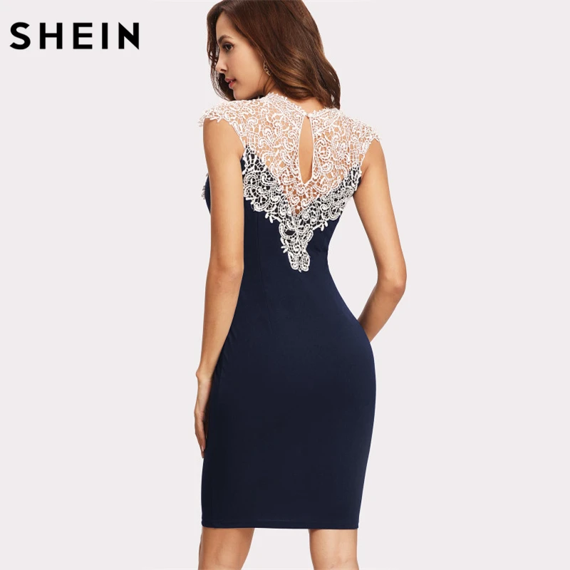 Comprar Vestido de fiesta de mujer SHEIN vestido de encaje Floral de Color sin mangas Online Baratos