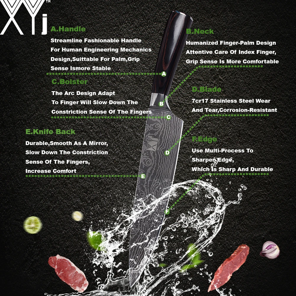 . Comprar XYj 7cr17 Acero inoxidable cuchillo Santoku utilidad fruta cuchillo de cocina Damascus venas hoja Color madera mango del cuchillo Online Baratos.
